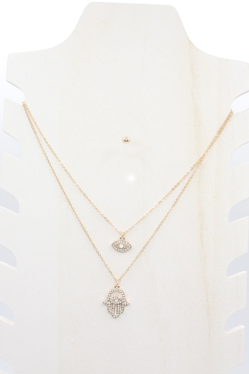 DOUBLE LAYER CHAIN WITH EVIL EYE AND HEMSA PENDANT NECKLACE SET