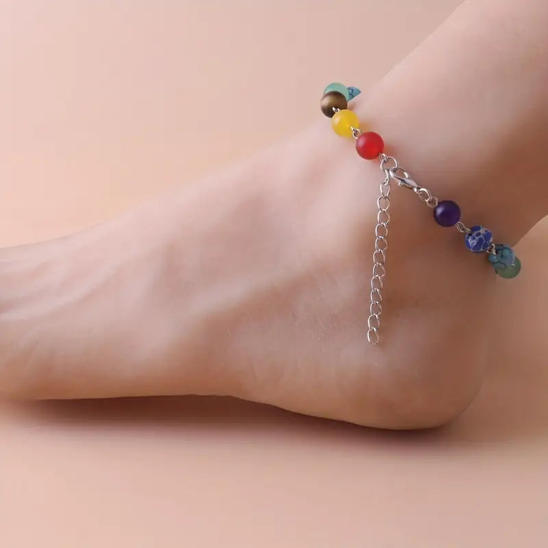 Hollow Lotus Beaded Anklet With Healing Energy 7 Chakra Beads